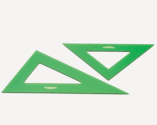 La escuadra tiene forma de triángulo rectángulo. Se distinguen dos tipos diferentes: la escuadra de 45º, o sea la escuadra propiamente dicha, en la cual os catetos del triángulo rectángulo tienen igual longitud y forman un ángulo de 45º con la hipotenusa. La escuadra de 60º, también llamada cartabón, cuyos catetos tienen longitudes diferentes y forman con la hipotenusa ángulos de 60º y 30º. Las escuadras sirven para el trazado de paralelas, perpendiculares y oblícuas.