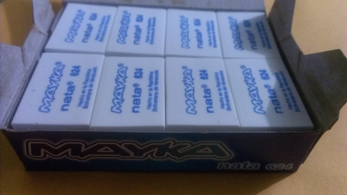Esta es una pastilla, generalmente de forma rectangular, de colores variados y de consistencia blanda y flexible. Entre las diversas sustancias que la componen, interviene el caucho, pero en nuestros días éste ha sido sustituido por el caucho sintético o por materiales plásticos. Una goma de buena calidad es blanda, no mancha el papel con su color ni produce ruido al usarla. Al frotarla suavemente, desaparecerá todo vestigio del trazo de lápiz. No es necesario borrar con fuerza, ya que el resultado será el mismo y se corre el peligro de arrugar el papel. Par borrar zonas pequeñas sin alterar los trazos adyacentes, se utiliza la plantilla para borrar.